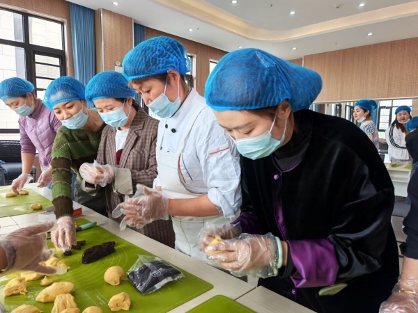 活动伊始,主持人向到场家长介绍参会人员与活动流程,随后体验环节正式开始。家委会代表走进班级,化身教师或保育员,全程参与幼儿晨间照料、区域活动、生活护理、游戏陪伴等日常工作,沉浸式感受幼教工作的细致与温暖。伙委会与膳食监督委员会代表则走进膳食工作区域,在专业指导下参与幼儿点心制作,直观了解食材甄选、营养搭配、膳食加工全流程,守护幼儿舌尖上的安全与健康。
