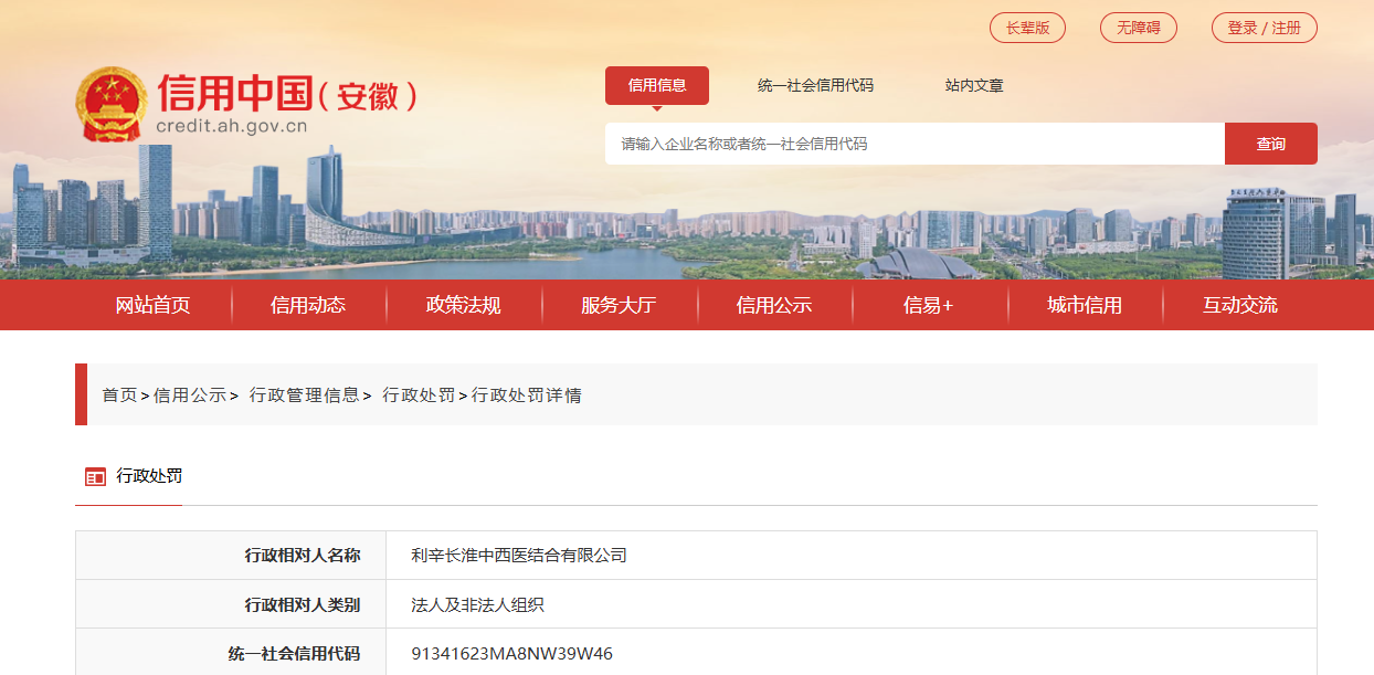 近日,据“信用安徽”公开披露行政处罚信息,因虚构医疗服务,利辛长淮中西医结合有限公司被处以罚款1.219147万元,退回违规收取的医保基金0.4451536万元。行政处罚决定书文号是利医保处字﹝2026﹞3号。