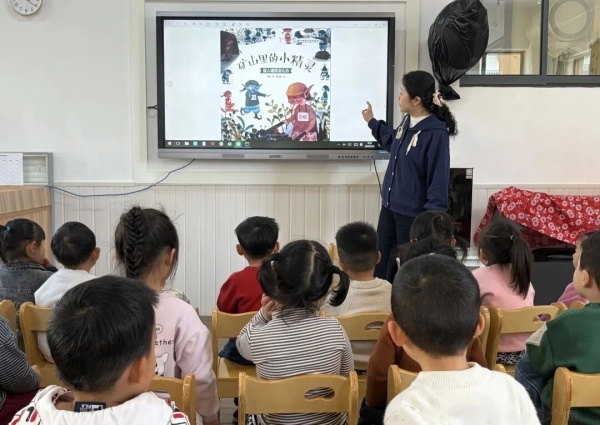 教育是一场温暖的双向奔赴。小班活动特别邀请黄寅巽小朋友的姑姑走进课堂,结合矿区特色文化,为孩子们讲述绘本故事《矿山里的小精灵》。