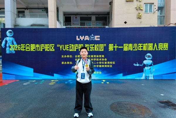 凭借本次比赛的出色表现,汪予晨同学成功晋级合肥市青少年机器人赛事。在此,向汪予晨同学表示热烈祝贺,也预祝他在市级赛场上再接再厉、再创佳绩,为校争光!希望全校同学以汪予晨为榜样,积极探索、勇于创新,在学习与实践中不断突破自我,争取在今后的各类赛事中再创佳绩,为校争光!(文图/王琳 陆金秀)