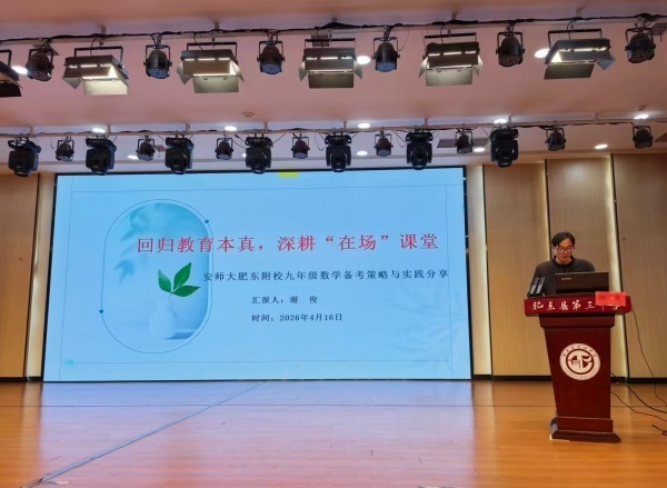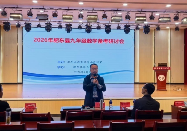 为了进一步提升全县九年级数学复习教学的针对性和实效性,精准把握中考命题方向,2026年4月16日下午,肥东县九年级数学复习备考研讨会在肥东三中总部多功能报告厅顺利召开。会议由肥东县教育体育局教科室副主任孙家和主持,全县九年级数学教师参加了此次研讨会。
