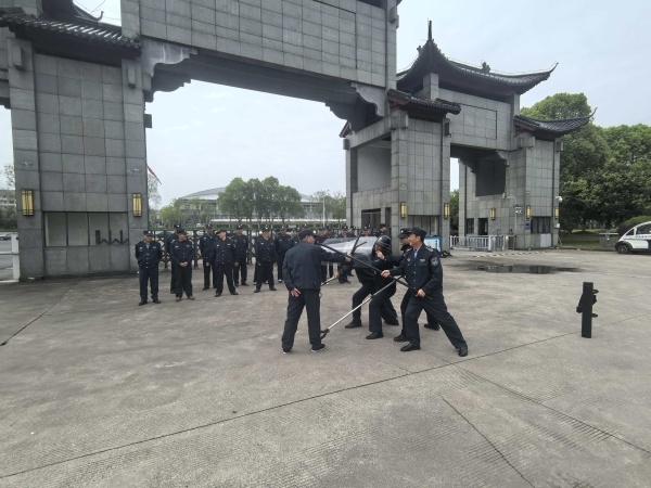 实战培训进校园,筑牢第一道防线。4月15日全民国家安全教育日当天,学校安全管理处联合池州市公安局驻校警务站,在南大门广场举办校园安保实战安全培训。培训围绕防暴器械规范使用、最小作战单元协同处置、校园突发警情应对等环节,通过理论讲解、动作示范、模拟演练等方式,全面提升安保人员的应急处突与实战防护能力,进一步夯实校园安全第一道防线。