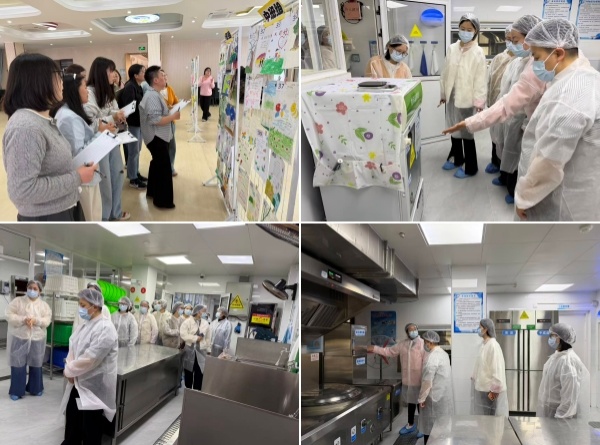 家长们按照规范流程,依次穿戴一次性口罩、防尘帽、鞋套等进入食堂操作区域。徐莉详细介绍了食堂工作人员每日上岗前的标准化准备流程,强调“凡进必检、凡触必消”的卫生原则,让家长们直观感受到园所对食品安全的严谨态度。